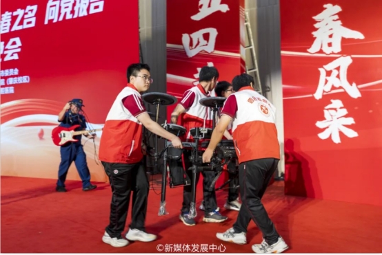 “五四的火炬,唤起了民族的觉醒。壮丽的事业,激励着我们继往开来。”为保障晚会顺利开展,华商青年志愿者以专业和热情,从台前到幕后,以实际行动助力晚会开展。