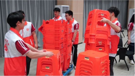 晚会圆满结束后,志愿者们便马不停蹄的投入到撤场工作中去,拆卸舞台设备、整理道具、清理现场……大家分工明确,配合默契,将物资分类整理好,将活动物资搬运到相应的指定地点,并及时清理现场,确保现场恢复原状。志愿者们用实际行动为这场五四晚会画上了一个完美的句号。