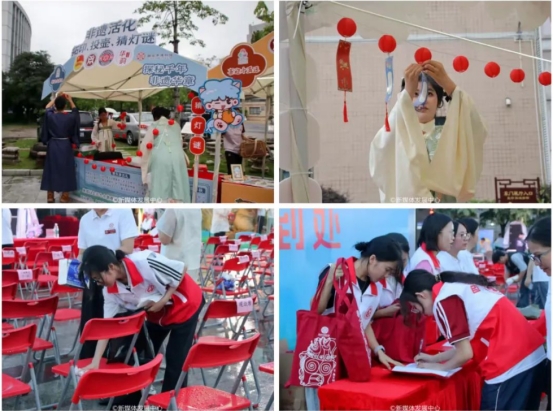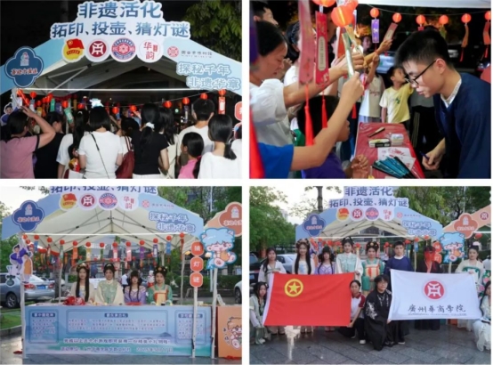 活动现场,广州华商学院华韵文化社以“非遗活化”为主题,设置拓印、投壶、猜灯谜等互动体验区,让参与者在亲身实践中感受中华优秀传统文化的独特魅力。在拓印区,游客可自选传统图案亲手制作拓印作品,体验非遗技艺的精妙;投壶区内,参与者执箭投壶,感受古代礼仪的趣味;灯谜区前,游客们驻足思考,破解谜题,在文字游戏中领略中华文化的深厚底蕴。