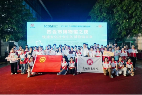 5月17日晚,四会市2025年度“5·18国际博物馆日”宣传暨博物馆之夜活动在四会市博物馆举行。本场活动以“快速变化社会中的博物馆未来”为主题,吸引了近3000名市民群众参与。我校华韵文化社、“小旅进镇”实践团作为代表参与文化集市展览,近50名华商志愿者参与服务其中。