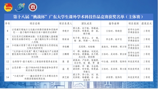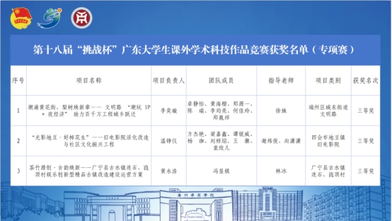 经过激烈角逐,全省共评选特等奖178项、一等奖272项、二等奖451项,覆盖自然科学、社科调研、科技发明三大领域。共有17支队伍获奖,其中主体赛一支二等奖,13支三等奖,专项赛3支三等奖。我校参赛团队以创新方案服务地方需求,展现了青年扎根大地、敢闯敢创的担当。赛事不仅为城乡发展留下“青春印记”,更以“科技+实践”的双向奔赴,书写了“强国一代”的使命答卷。