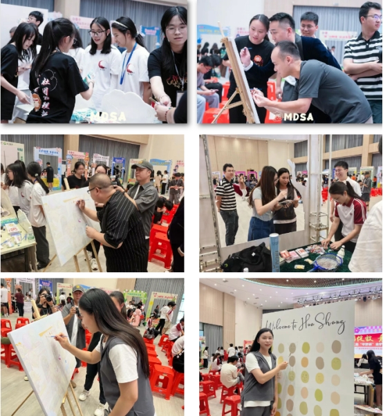 开幕式结束后,领导师生们共同走进“互动市集”,沉浸式体验社团创意。各个社团摊位气氛活跃,笑声连连。