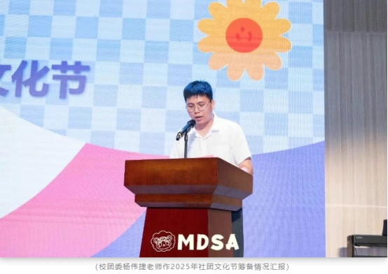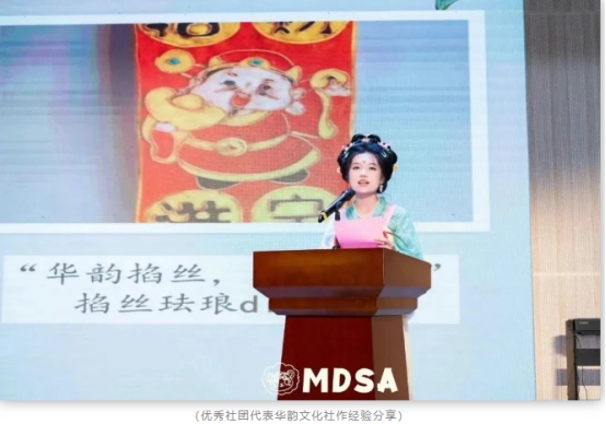 活动在社团展示活动中拉开帷幕。校团委杨伟捷老师致欢迎词。他强调,繁荣校园文化、助力学生成长是学校五育融合工作的重点,希望同学们在丰富的学生社团活动中拓宽视野、锤炼品格,以青春之力传承文化,以创新之姿拥抱未来。随后,华韵文化社作为优秀社团代表上台分享本社团的工作特色亮点、建设成果及工作展望,展现新时代华商学生社团骨干的责任与担当。