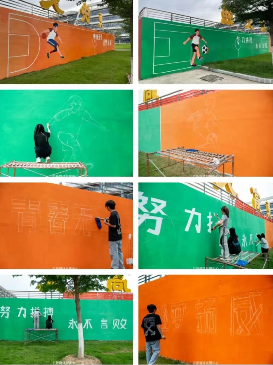 在本次墙绘实践中,华商青年以笔为媒介,充分运用艺术创作特长,勾勒出健康生活的绚丽画卷。他们以缤纷笔触为校园绘就了一幅幅生动的健康生活图景,赋予校园全新的生机与活力。这些墙绘作品,承载着对积极健康生活的向往,为营造充满激情、活力四溢的校园运动氛围,注入源源不断的新鲜动力 。展望未来,我校团委将探索多元路径,创新活动形式,持续深化校园文化建设,为校园绘“韵”铸“魂”,书写“活力华商”新篇章。