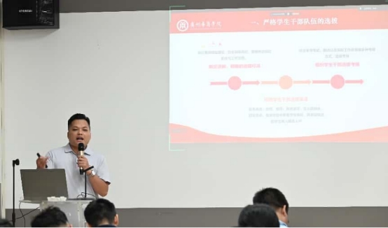 首先,由教师教育学院江庆基副主任围绕“党团班级建设和学生日常事务管理”展开分享。江副主任从党团建设的引领作用、班级管理的策略方法以及学生日常事务处理的要点等方面入手,通过具体案例分析,详细介绍了如何高效开展党团班级建设和学生日常事务管理工作,为全体辅导员提供了可借鉴的实践经验。