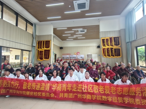 初冬微寒,暖阳送暖。关爱老人是中华民族的传统美德,更是青年一代应当主动扛起的社会责任。由共青团广州华商学院肇庆校区委员会悉心指导,数字经贸学院团委青协分会与四会市春晖优品养老院在2025年11月14日联合举办了“青春躬身力行,敬老传递温情”长者生日会志愿活动。活动当天,志愿者们和长者们齐聚一堂,共同度过了一段难忘时光。