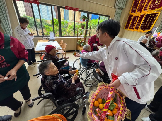 歌声落幕,暖心的礼物派送环节如期而至。志愿者们将礼品逐一送至老人手中,简单祝福如“生日快乐”“身体健康”,就传递出浓浓关怀。老人们的笑脸,让寒意尽散。