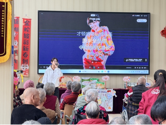 随后,文艺表演精彩上演。志愿者们带来歌曲、小品等节目,长者们兴致勃勃,时而跟唱,掌声笑声不断。