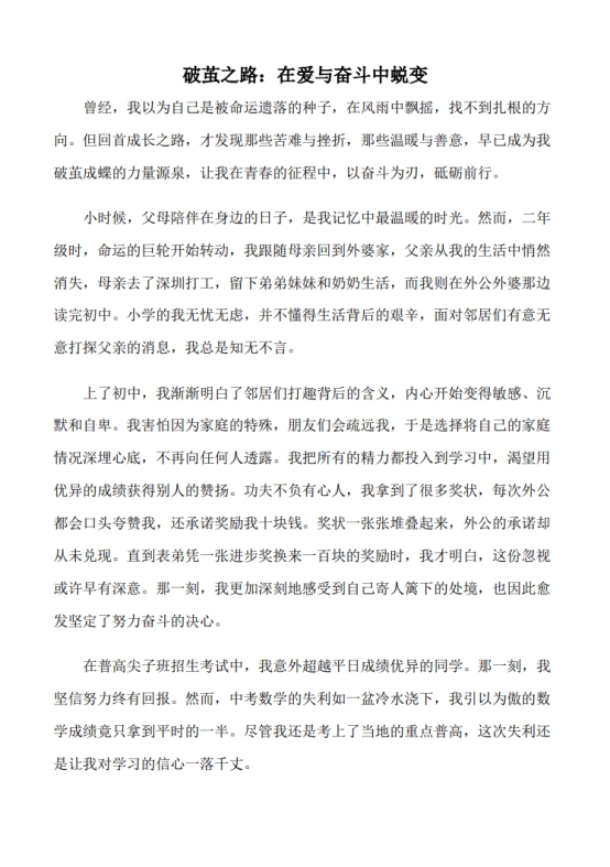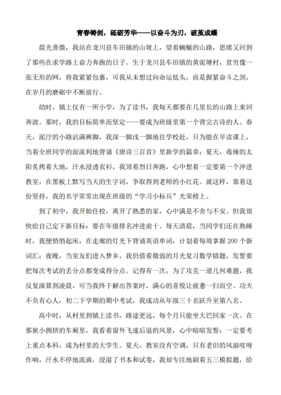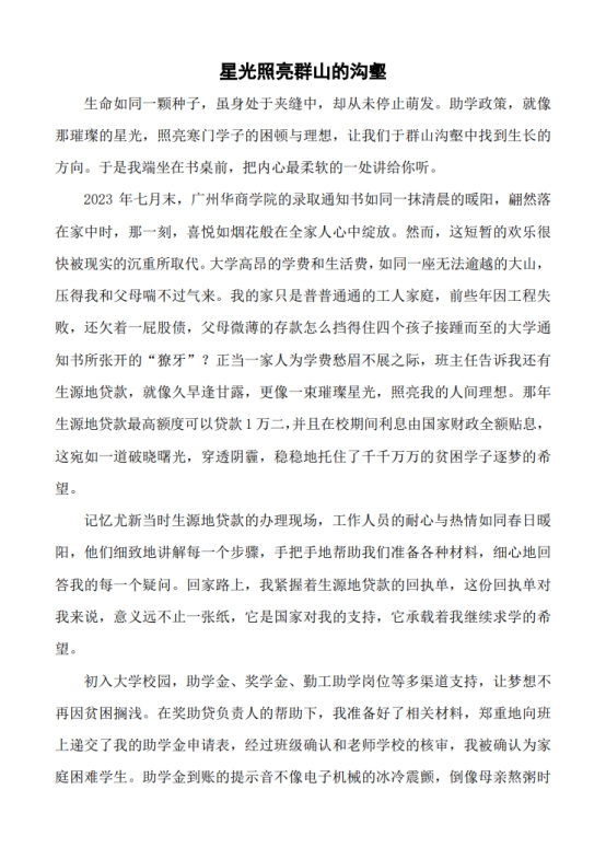 近日,广州华商学院2025年度“励志杯”征文比赛圆满落幕。赛事由学校学生处主办,各二级学院协办,肇庆校区学工办、文学院联合承办,获全校师生关注。比赛以“青春铸剑,砥砺芳华——以奋斗为刃,破茧成蝶”为主题,自2025年5月启动后,各学院高度重视、积极响应,按“优中选优”原则严格把关,最终择优推送30篇候选作品。参赛选手均为享受国家奖助学金、助学贷款等政策的在校生,他们以自身脱贫或成才经历为主线,用朴实语言和真挚情感,讲述家庭与个人在资助政策下的积极变化,诠释成长中的坚守与蜕变,彰显新时代青年的进取与感恩担当。