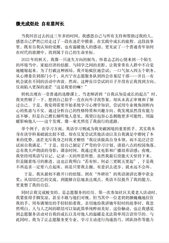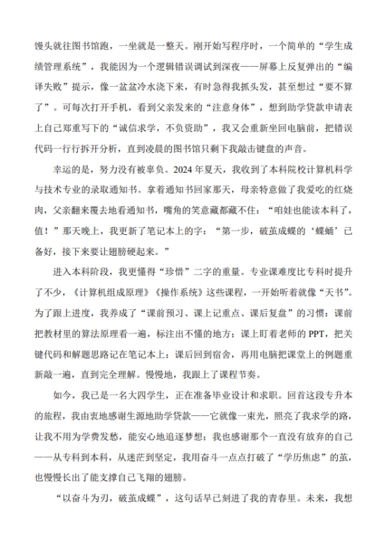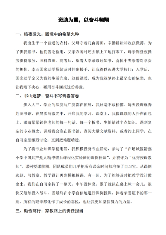 此次比赛为受助学子搭建了展示自我的平台,传递了感恩奋进的正能量。学校将继续深化资助育人工作,挖掘更多成长典型,激励广大学生以奋斗之姿书写青春华章。