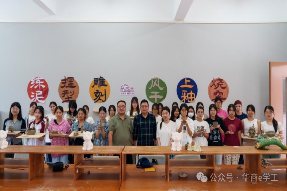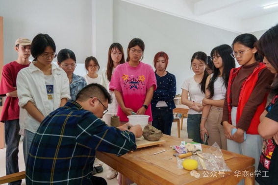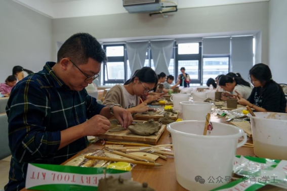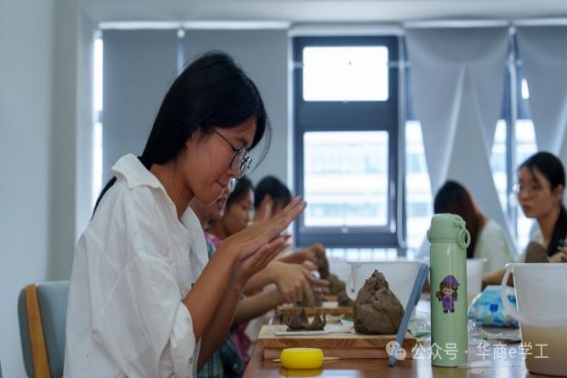 本次活动不仅是一次技艺传授,更是一场文化浸润, 借陶艺非遗技法,让校庆纪念品突破常规载体,通过校徽、校训元素的创意转化,强化身份认同,工艺大师与青年学子的协作,彰显华商“传承与创新”的永恒主题。“以土为纸,以指为笔,每一件作品都是华商人写给母校的三行情诗。”