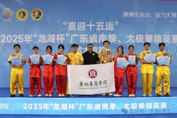 当南拳的刚劲遇上太极的温润,当青春的热血碰撞专业的赛场--由学校党委武装部、“一站式”学生社区联合组建的华商学院武术队,在2025届“龙湖杯”广东省南拳、太极拳精英赛中奋勇拼搏,凭借扎实的功底和出色的表现,斩获集体赛金奖及6项个人赛金奖、3项个人赛银奖,用10枚奖牌为学校“五育并举”、“三全育人”写下生动注脚!