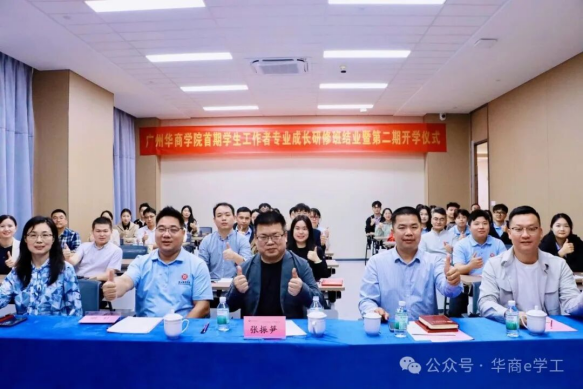 10月28日,广州华商学院首期学生工作者专业成长研修班结业暨第二期开班仪式在广州校区弘美楼303室和肇庆校区2号楼215会议室举行。学校副校长许娜、研修班专家张振笋教授、学生处处长黄国富出席仪式,第一期与第二期研修班全体学员共同参与,见证学工队伍专业成长的传承与新篇。