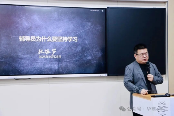 最后,张振笋教授以《辅导员为什么要坚持学习》为题开展专题辅导。他开篇点题,提出“结业是新一轮学习的开始”,更以 “如果有收获,那是你不断折腾的结果” 强调主动探索的价值。张教授谈到,在知识快速迭代的当下,学习早已成为辅导员的必备生活方式;工作需从依赖经验直觉转向基于证据的科学实践,专业化表达则是核心能力支撑;唯有通过持续学习,才能突破职业天花板,实现从事务执行者到问题研究者的进阶;也只有以学习为径,才能构建可持续发展的精神家园,有效抵御职业倦怠。