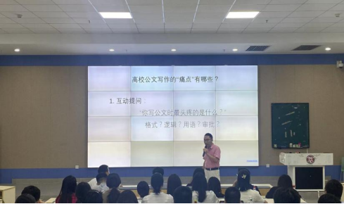 为提升高校教职工公文写作水平,强化公文规范意识,2025年6月6日,广州华商学院(肇庆校区)在8号楼108室,开展了教师第一期公文写作专题培训。此次培训特别邀请了广东财经大学许峰副教授,对教师进行公文的“请示、报告、函”的主题分享,现场学习氛围颇为浓厚。