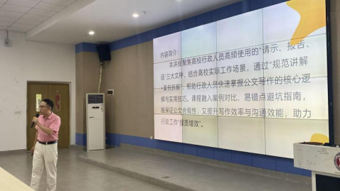 培训过程中,许峰副教授结合高校工作实际场景,聚焦“请示、报告、函”高校公文写作“三剑客”展开实战教学。同时,许峰副教授还强调了公文必须具有的规范格式以及基本要素掌握,精准传递公文写作的实操技巧,助力教职工掌握规范、实用的公文写作技能。
